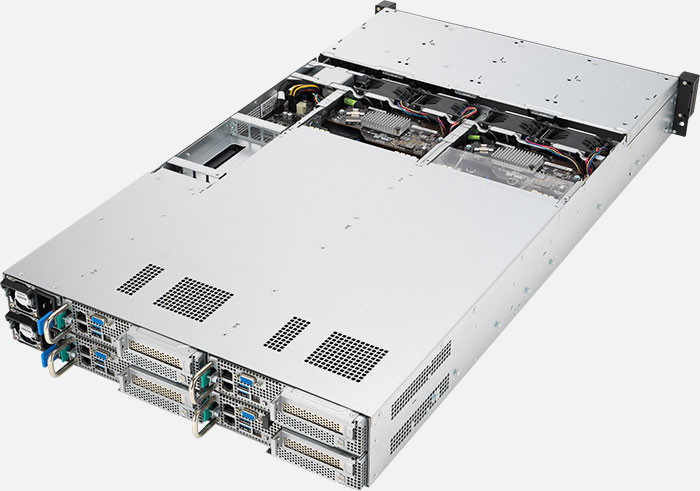 2U4N server powered by 3rd Gen Intel® Xeon Scalable processors, with each node supporting up to 16 DIMM, one PCIe® 4.0 slot, one OCP 3.0 and two M.2, and a total of eight NVMe/SAS/SATA drives.