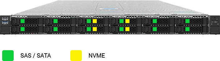 This system can be configured with NVMe drives, which are capable of significantly better performance than SATA and SAS.