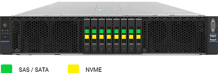 This system can be configured with NVMe drives, which are capable of significantly better performance than SATA and SAS.