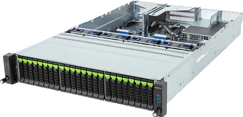 Single AMD EPYC 9004 Series Processors, Supports up to 2x single slot GPU cards, Dual 800W redundant power supply, 16x 2.5" NVMe/SATA/SAS hot-swappable drive bays.