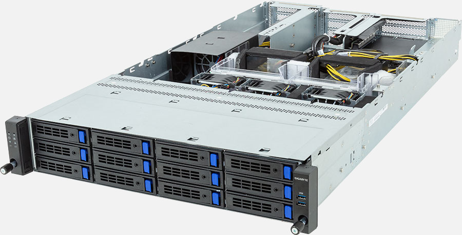 Single AMD EPYC 8004 Processor, Supports up to 4x double slot GPU cards, 2400W Redundant PSU, 12x 3.5"/2.5" SATA/SAS hot-swappable drive bays.