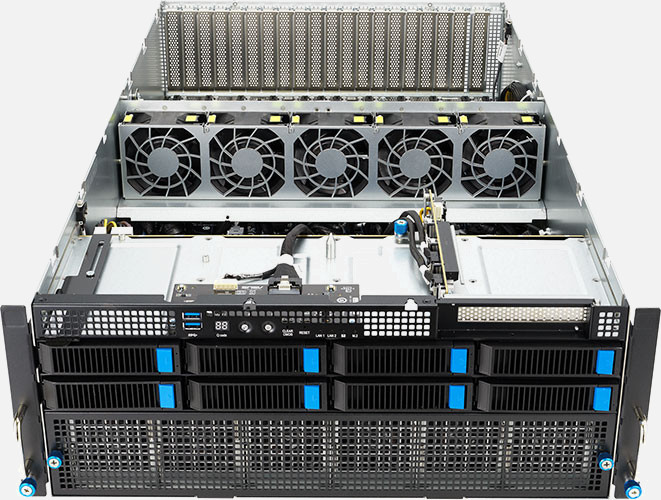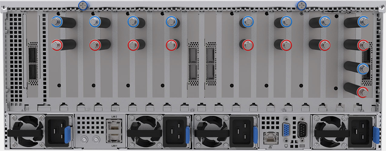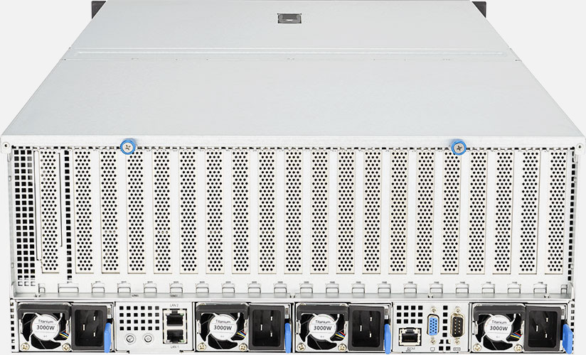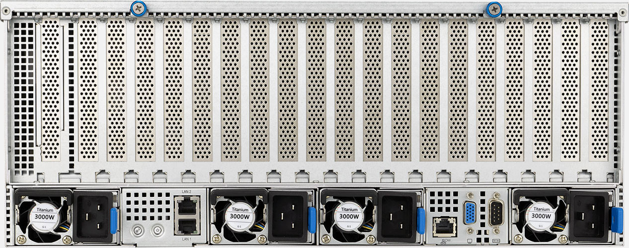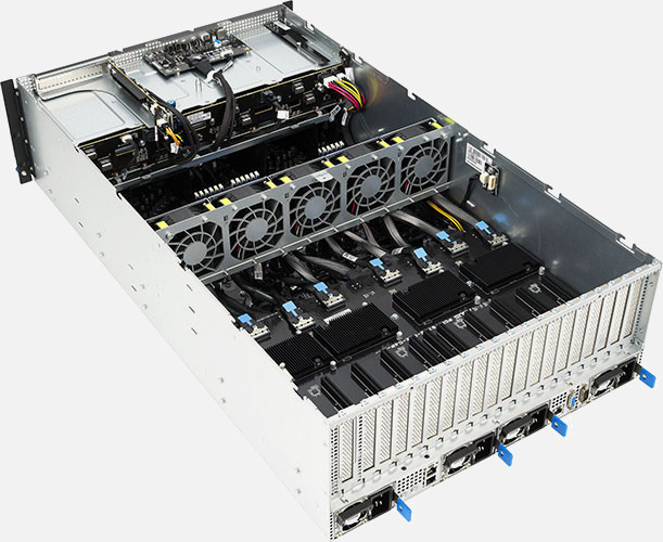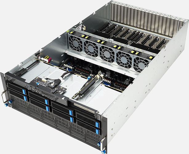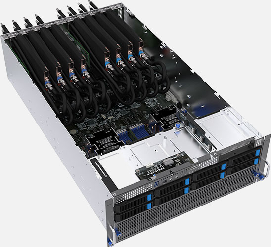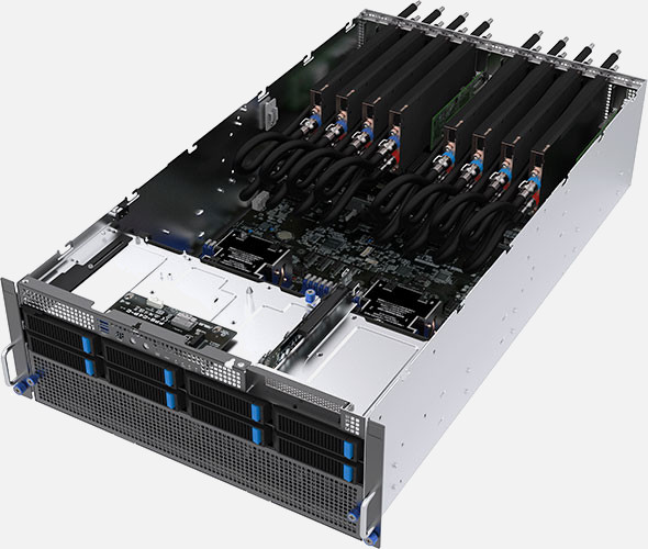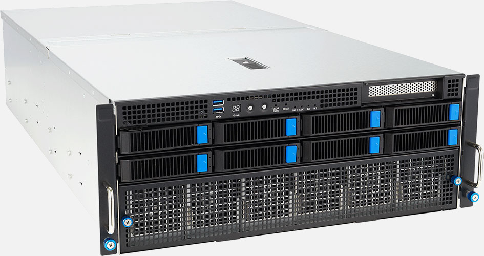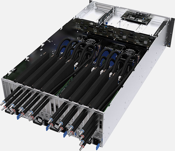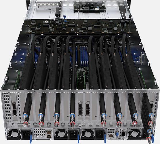 Dual AMD EPYC 9004 Series Processors, Supports up to 8x double slot GPU cards, Quad 2600W redundant power supply, 8x 3.5"/2.5" NVMe/SATA/SAS hot-swappable drive bays.
