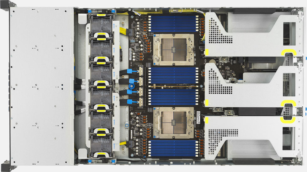 Dual AMD EPYC 9005 Series Processors, Supports up to 3x double slot GPU cards, Dual 2700W redundant power supply, 16x 2.5" NVMe & 8x 2.5" NVMe/SATA/SAS hot-swappable drive bays.