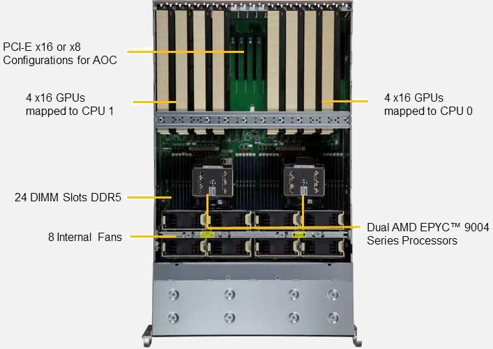 Dual AMD EPYC 9005 / 9004 Series 8x GPU Server - 20x 2.5" SATA / SAS + 4x NVMe Dedicated Drives