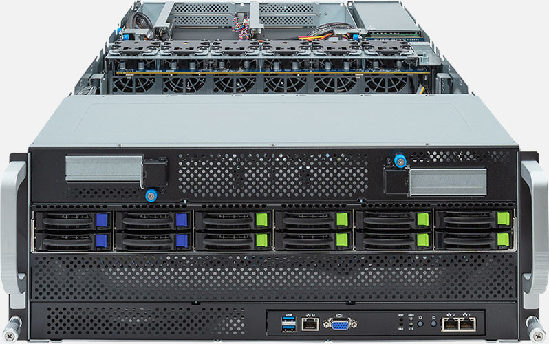 Dual AMD EPYC 9004 series processors, Supports up to 10x double slot GPU cards, 2x 1Gb/s BASE-T LAN ports (Intel® I350-AM2) , 8x 2.5" NVMe/SATA/SAS and 4x 2.5" SATA/SAS hot-swappable drive bays.