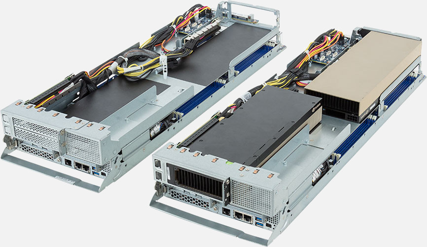 Dual Node, Dual AMD EPYC 9004 series processor(Per Node), Supports up to 4x Dual slot GPU cards, 4x 1Gb/s LAN ports (Intel® I350-AM2), 3000W Redundant Power Supply, 4x 2.5" NVMe hot-swappable drive bays.