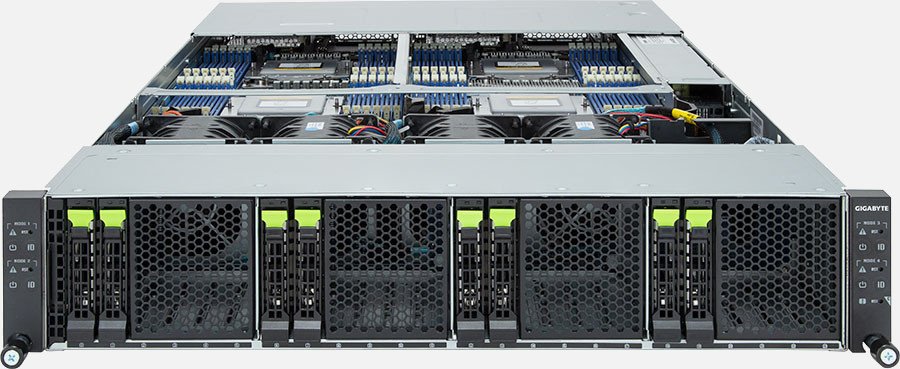 Quad Node, Dual AMD EPYC 9004 series processor(Per Node), 4x LP PCIe Gen5 x16 slots, 8x 1Gb/s LAN ports (Intel® I350-AM2), 3000W Redundant Power Supply, 8x NVMe/SATA/SAS hot-swappable bays.