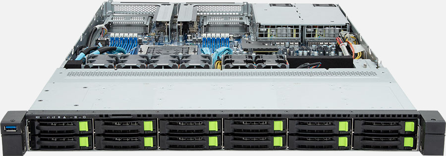 The Gigabyte R163-Z32 (6NR163Z32DR000AAC1) can be configured with hot-swap drives, allowing you to remove and replace the drives whilst the system is running with no interruption.