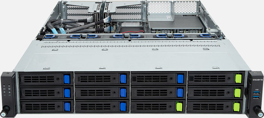 The Gigabyte R263-Z30 (6NR263Z30DR000AAC2) can be configured with hot-swap drives, allowing you to remove and replace the drives whilst the system is running with no interruption.
