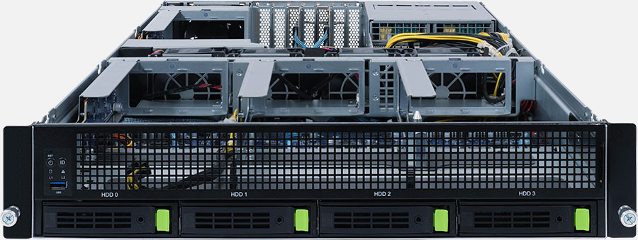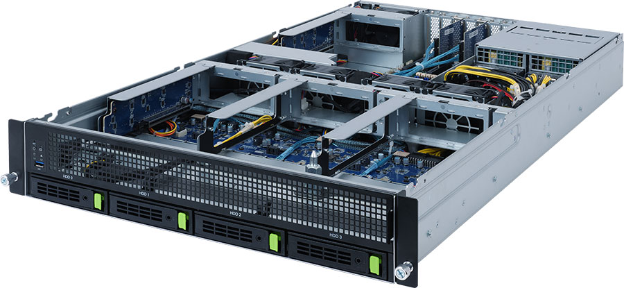 Single Ampere® Altra series processors, 2x FHFL PCIe Gen4 x16 slots for GPUs , 2x 1Gb/s LAN ports (Intel® I350-AM2), 1600W redundant power supply, 4x 3.5"/2.5" NVMe hot-swappable drive bays.