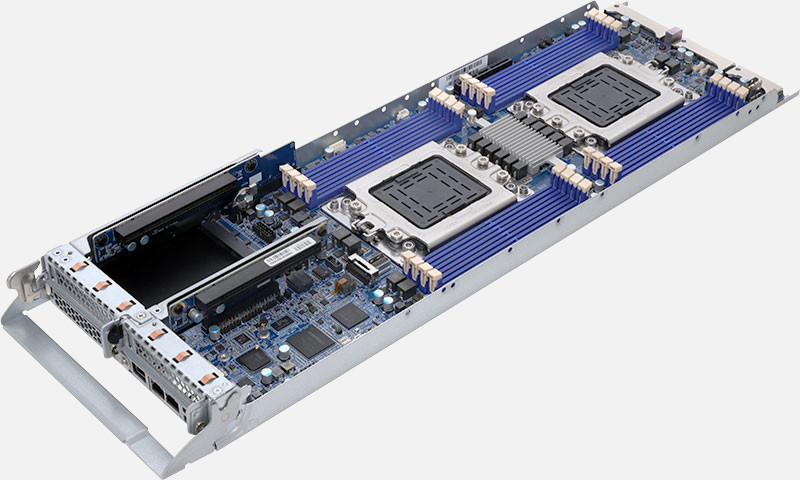 Quad Node, Dual Ampere® Altra series processors, 2x LP PCIe Gen4 x16 slots, 2x 1Gb/s LAN ports (Intel® I350-AM2), 2200W redundant power supply, 2x 2.5" SATA hot-swappable drive bays (Per Node).