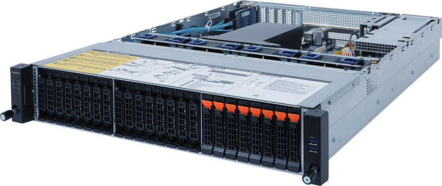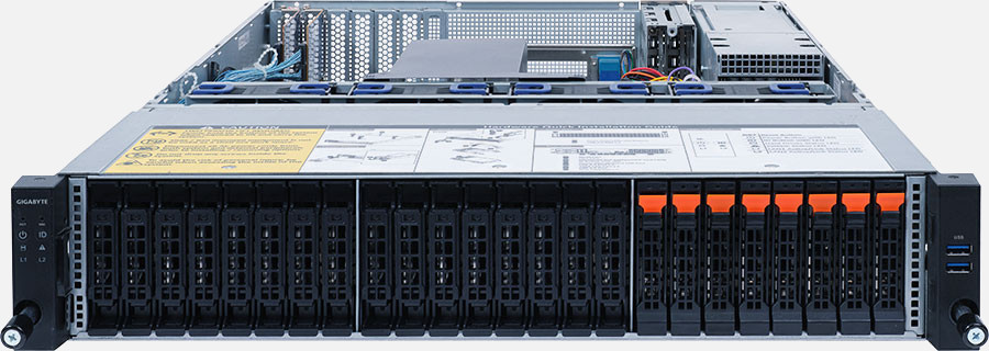The Gigabyte R272-P33 (6NR272P33MR-00-1) can be configured with hot-swap drives, allowing you to remove and replace the drives whilst the system is running with no interruption.