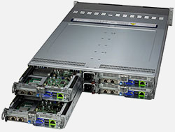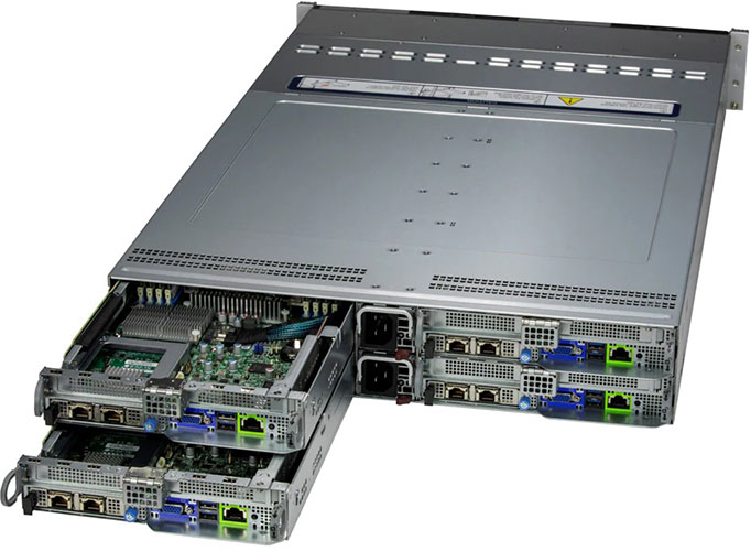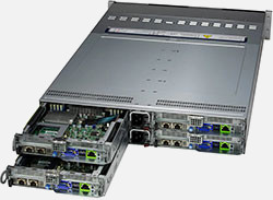 Ideal for Hyperconverged Infrastructure, Diskless HPC Cluster, High-Performance File System and Diskless HPC Clusters. Quad Node 2U Form Factor. Redundant 3000W Power Supply, 6x 2.5" hot-swap NVMe/SATA drive bays (Per Node)