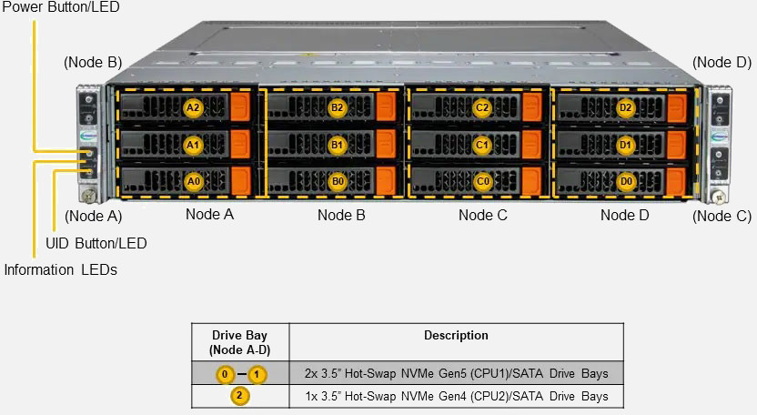 Ideal for Hyperconverged Infrastructure, Container Storage and Scale-Out File Server. Quad Node 2U Form Factor. Redundant 3000W Power Supply, 3x 3.5"/2.5" hot-swap NVMe/SATA drive bays (Per Node)