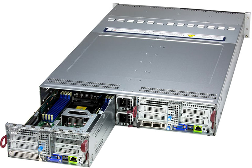 This 2U Twin delivers an innovative architecture where devices can be hot-swapped to allow for easier maintenance, to reduce/eliminate down time and to save space and energy.