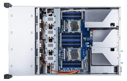 The motherboard is easily reached by removing the rear panel and we found access to all key components was unhindered. Although the MD90-FS0 board was originally launched for the E5-2600 v3 Xeons, it just needed a BIOS upgrade to support the v4 E5 Xeons as the new processors are simple drop-in upgrades.
