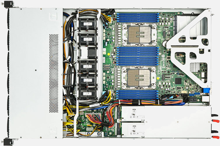 This server supports SATA drives, which are very cost-effective and adept at dealing with mass storage.