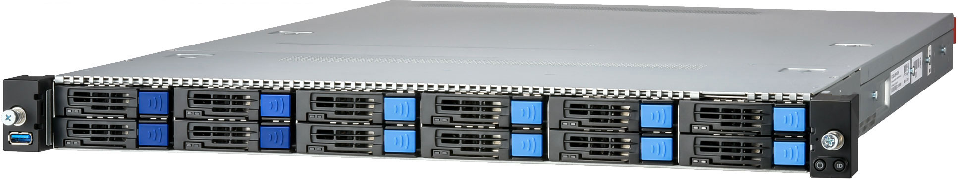 1U2S Cloud Server, 12 SFF. 2x FH/HL PCIe Gen 5.0 x16 slots. 4x SATA/8x NVMe hot swap drive bays, 850W Redundant power supply.