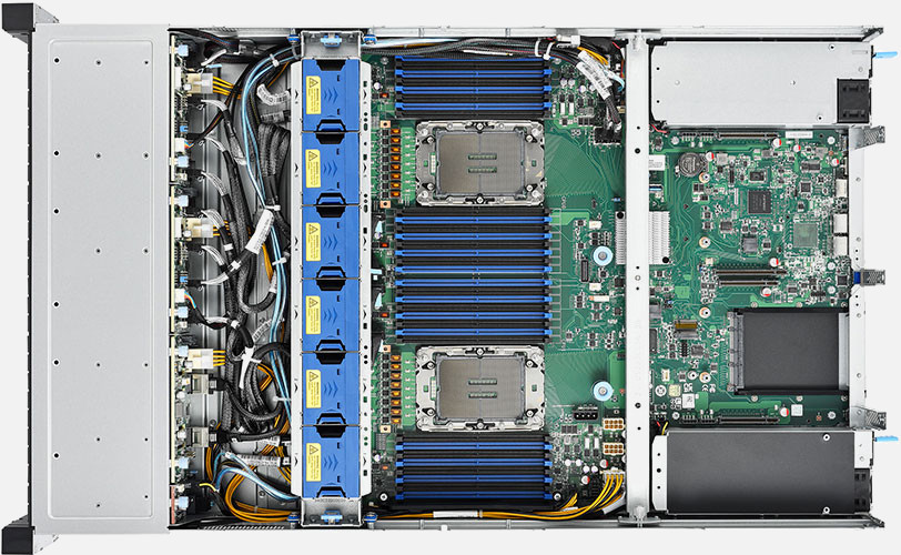 2U Dual 4th Gen Xeon CPU, 32 DIMM HPC / VM Server, 2x FH/HL PCIe Gen 5.0 x16 slots. 10x SATA/16x NVMe hot swap drive bays, 2000W Redundant power supply. Dual 10GB Base-T LAN.