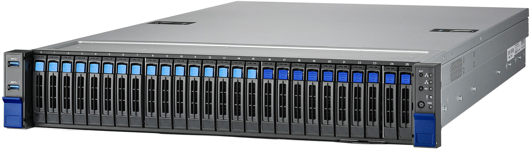 This server solution can be configured with 2.5" drives, which usually provide more energy efficiency, cost efficiency and boosted flexibility.