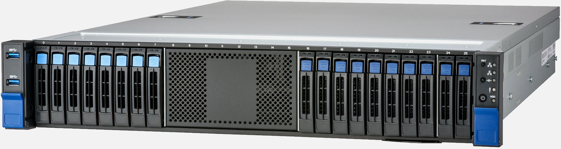 This server solution can be configured with 2.5" drives, which usually provide more energy efficiency, cost efficiency and boosted flexibility.