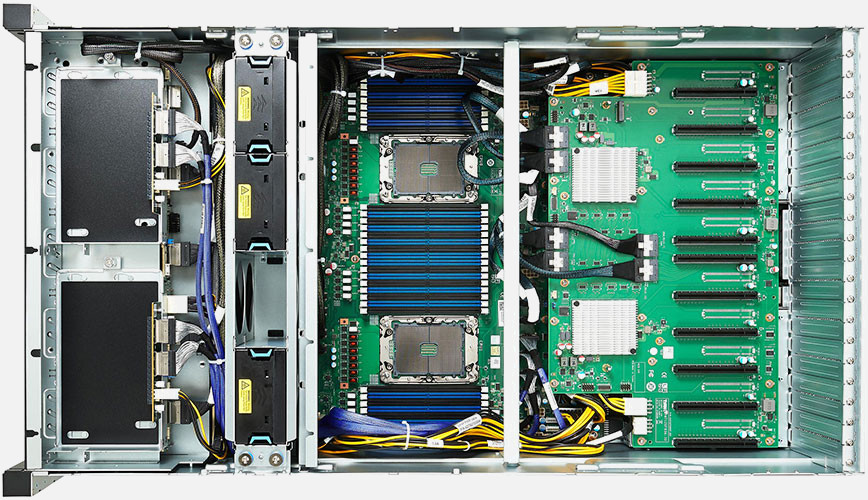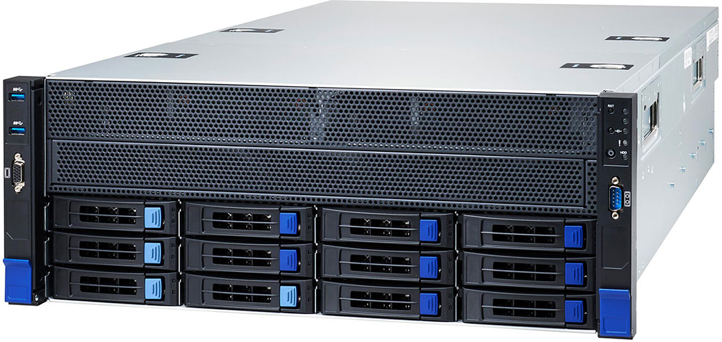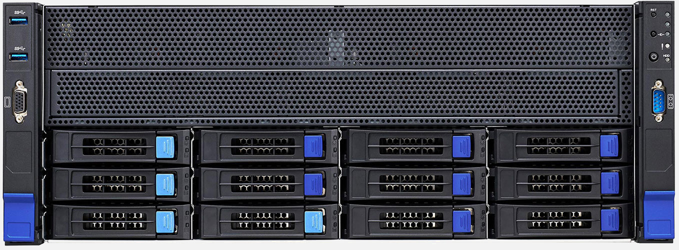Supports 10x double slot GPU cards, redundant power supply, 12 x 3.5/2.5" NVMe/SATA hot-swappable bays. Built for AI & HPC
