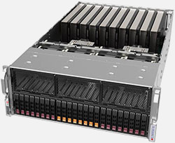 The Supermicro GPU A+ Server 4125GS-TNRT1 | AS-4125GS-TNRT1 can be configured with 2.5" drives, a more space efficient and low noise option. These drives also offer energy savings and increased flexibility.
