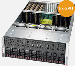 Supports up to 8x GPUs, Up to 24x Hot-swap 2.5" drive bays, 2x 10GBase-T LAN ports via Intel C622