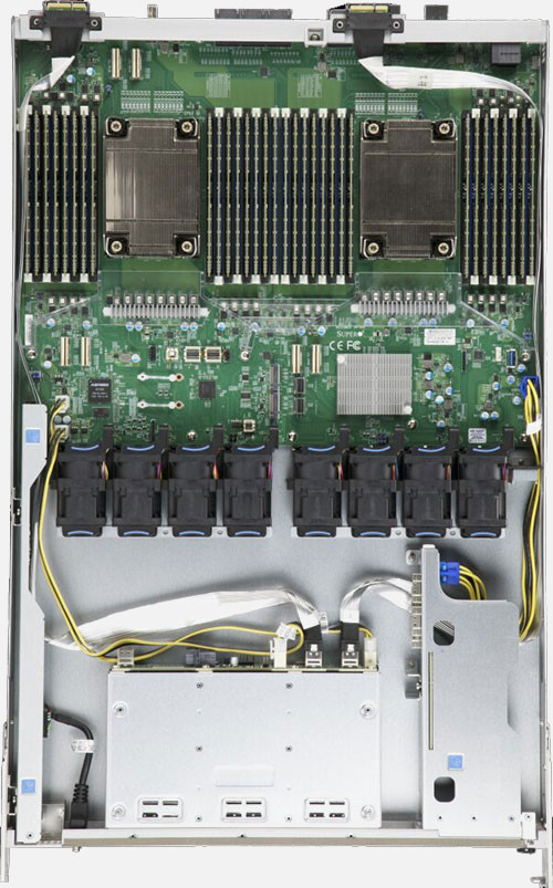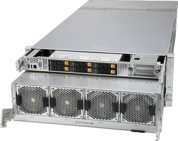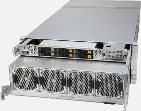 Ideal for HPC and AI/Deep Learning Training. 10x PCI-E Gen 4.0 X16 LP slots. 2x M.2 NVMe and SATA. 4x 2200W redundant Titanium level power supplies.