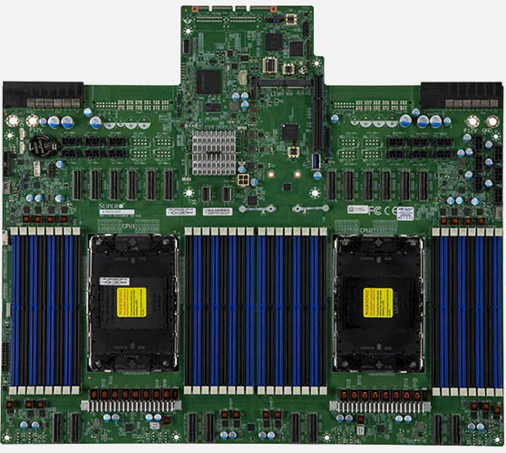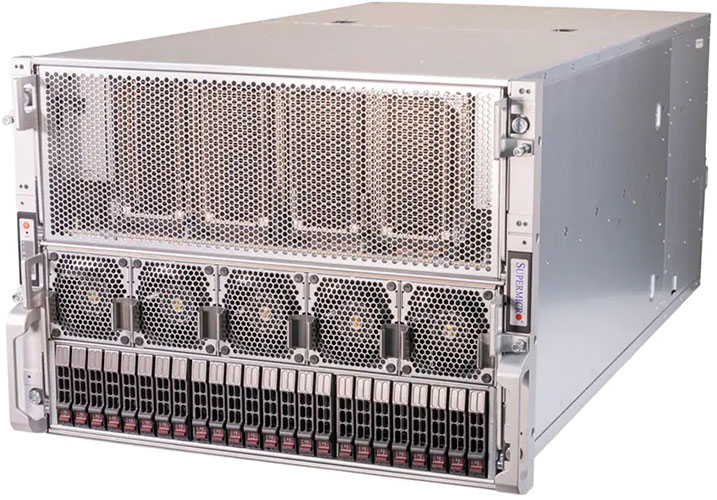 Ideal for HPC, AI, industrial automation, analytics server. 8x PCI-E 5.0 x16 (LP) slots, 2x PCI-E 5.0 x8 FHFL slots. Redundant 3000W Titanium Power Supply, 20x 2.5" hot-swap NVMe/SATA drive bays