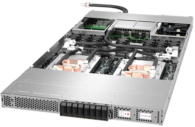 Dual node, Liquid Cooled, Single NVIDIA 72-core CPUs on a Grace™ CPU Superchip Series processor, Up to 480GB LPDDR5X onboard memory, 2700W Redundant PSU, Up to 4x Hot-swap E1.S drives & 2x M.2 NVMe drives per node.
