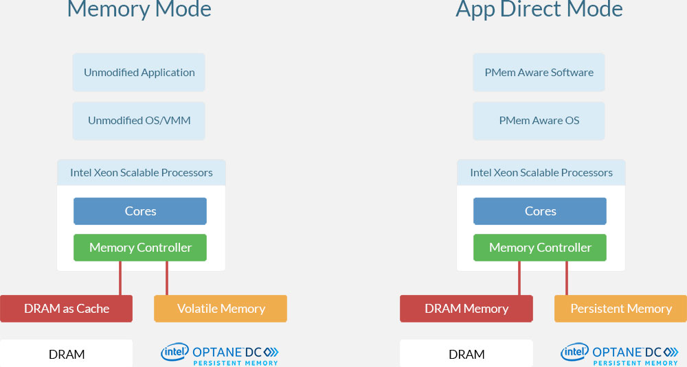 In App Direct Mode, software and applications are able to communicate directly to the Intel Optane persistent memory, lessening complexity in the stack. The option exists to have App Direct Mode utilise legacy storage APIs. This enables it to behave as an SSD and can boot an operating system. The OS views Intel Optane persistent memory and DRAM as two distinct memory pools. Like storage it is persistent and like memory it is byte addressable. It is cache coherent, extending persistent memory usage outside of the local node. Consistently low latency, larger data sets are supported.