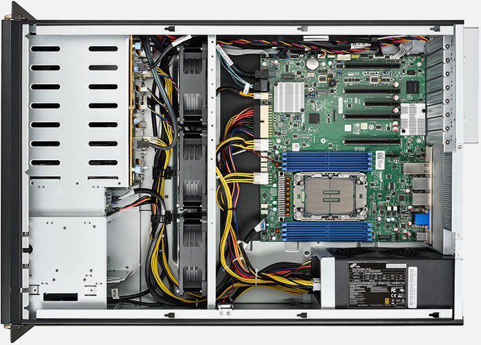 1S Professional Workstation with 6 LFF & 2 NVMe U.2 bays, 4x FH/FL PCIe Gen.5 x16 slots. 6x 3.5" SATA/ 2x 2.5" NVMe Hot Swap Drive bays.