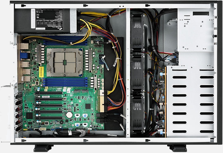 4U1S HPC/GPGPU Pedestal Deskside HPC Server with up to 2 double wide GPU cards support, Single Socket AMD EPYC, 8x 3.5" SATA/SAS hot-swap drive bays, 2x NVMe hot swap drive bays,
