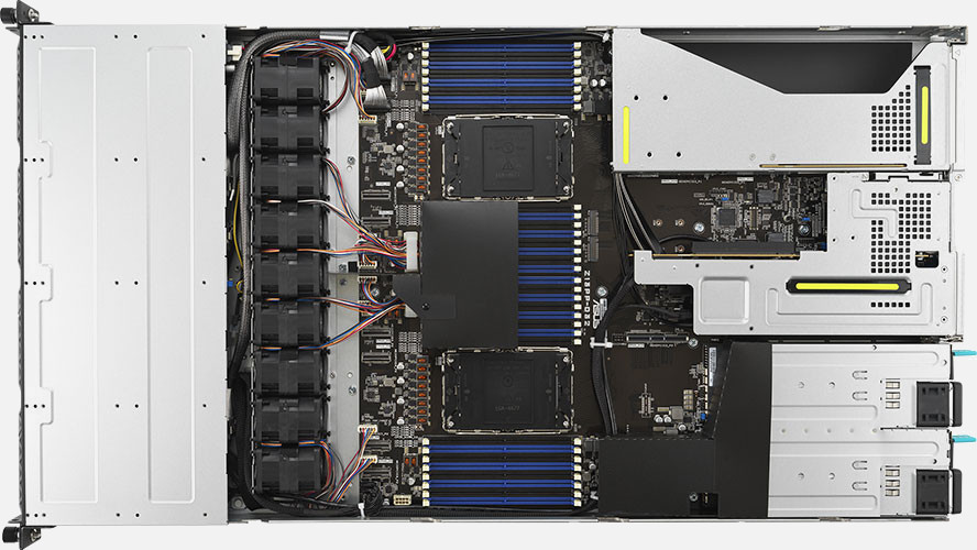 Dual 4th Gen Intel Xeon Scalable Processors, Supports 1x double slot GPU cards, Dual 1200W redundant power supply, 4x 2.5" NVMe/SATA/SAS hot-swappable drive bays.