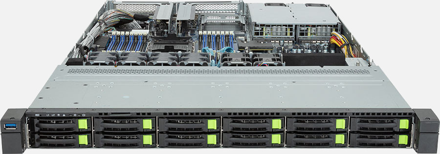 Single 4th/5th Gen Intel Xeon Scalable Processors, 1x FHHL PCIe Gen5 x16 slot, 1x 1Gb/s LAN ports (Intel® I210-AT), 12x NVMe/SATA/SAS hot-swappable drive bays.