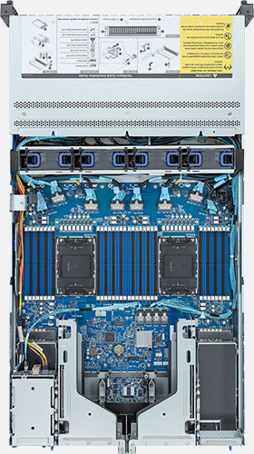 Dual 4th Gen Intel Xeon Scalable Processors, 4x FHHL PCIe Gen5 x16 Slots, 2x 1Gb/s LAN ports (Intel® I350-AM2), 12x 2.5" NVMe, 4x 2.5" NVMe/SATA/SAS, 8x 2.5" SATA/SAS hot-swappable drive bays.