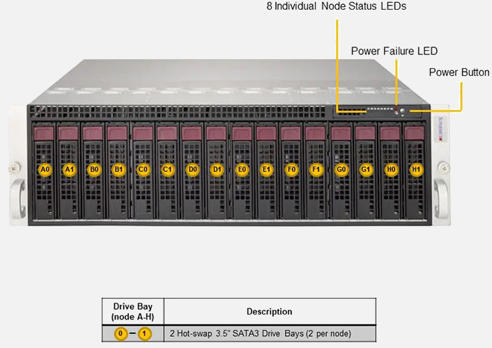The Supermicro Microcloud A+ Server 3015MR-H8TNR | AS-3015MR-H8TNR features hot-swap hard drives, giving you more flexibility and allowing you to remove drives without having to shut down the system.