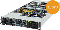 Single Intel Xeon 6 Series processor, Supports 2x Dual Slot Gen5 GPUs, Single 1Gb/s LAN port, redundant power supply, 2x 2.5" NVMe/SATA/SAS hot-swappable bays.