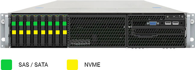 This system can be configured with NVMe drives, which are capable of significantly better performance than SATA and SAS.