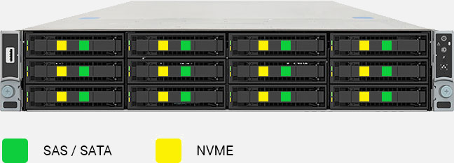 This system can be configured with NVMe drives, which are capable of significantly better performance than SATA and SAS.