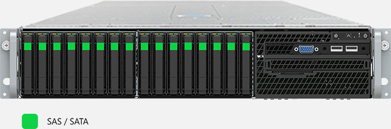 This system can be configured with SATA drives for cost-effective 12gb/s storage.