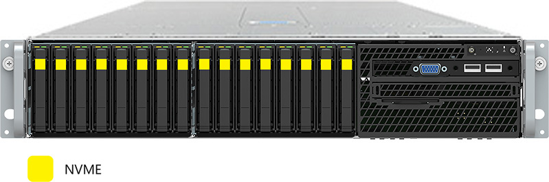 This system can be configured with NVMe drives, which are capable of significantly better performance than SATA and SAS.