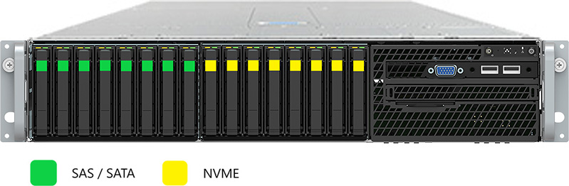 This system can be configured with NVMe drives, which are capable of significantly better performance than SATA and SAS.