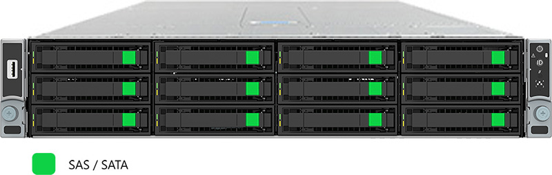 • 12 x LFF 3.5" Hot Swap Drive Bays (Caddies included) SAS/SATA