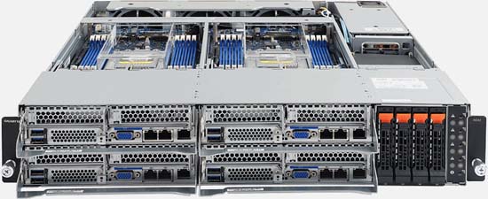 2U Quad Node, Supports 5G Network Infrastructure, 4x 2.5" NVMe Hot-swappable SSD Drive Bays, 8x M.2 with PCIe Gen3 x4 interface, 8x Low Profile PCIe x16 Expansion Slots, Short Depth.
