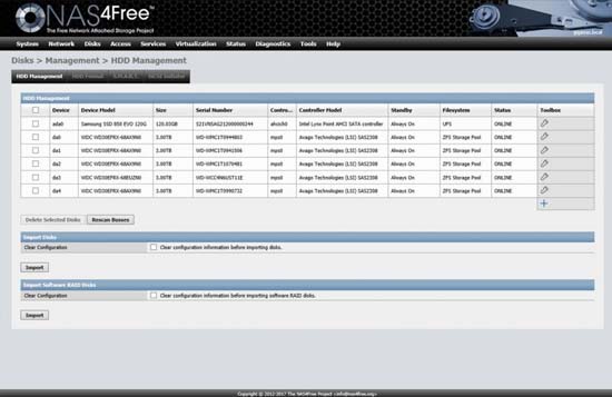 NAS4Free supports the following protocols CIFS/SMB (Samba), Active Directory Domain Controller (Samba), FTP, NFS, TFTP, AFP, RSYNC, Unison, iSCSI (initiator and target), HAST, CARP, Bridge, UPnP, and Bittorent, which are all highly configurable by using NAS4Free's great web user interface.