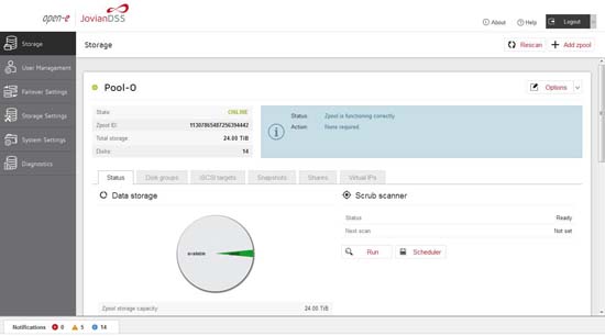 Open-E JovianDSS is a ZFS- and Linux-based Data Storage Software designed especially for enterprise-sized Software Defined Storage environments.