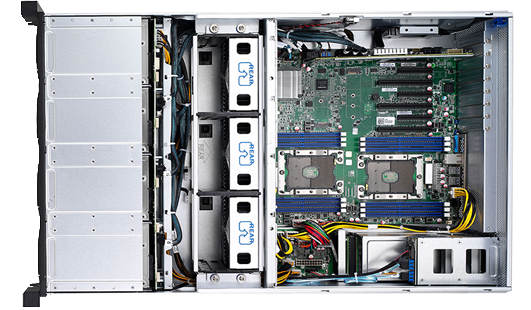 4U Dual Socket Xeon SP Storage Server, 24x 3.5" Hot-swap SAS 12G / SATA 6G Drive Bays at front, 2x 2.5" Hot-swap SAS 12G / SATA 6G Drive Bays at rear.