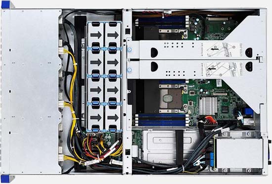 This server supports SATA drives, which are very cost-effective and adept at dealing with mass storage.